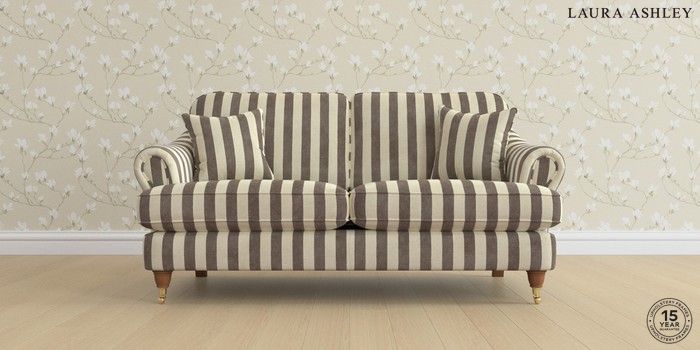 7.0.3 Buy Ambersham by Laura Ashley 3 Seater Small Sofa Orla Stripe Dark Truffle Natural Low Brass Castor - Teak from the Next UK online shop Click here to use our accessible website
