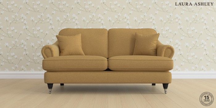 7.0.3 Buy Ambersham by Laura Ashley 3 Seater Small Sofa Peyton Ochre Yellow Low Chrome Castor - Black from the Next UK online shop Click here to use our accessible website