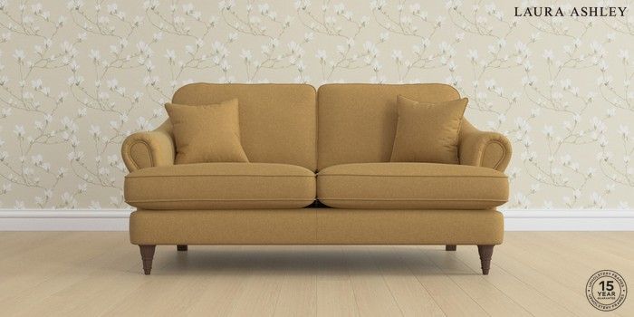 7.0.3 Buy Ambersham by Laura Ashley 3 Seater Small Sofa Peyton Ochre Yellow Low Turned - Chestnut from the Next UK online shop Click here to use our accessible website