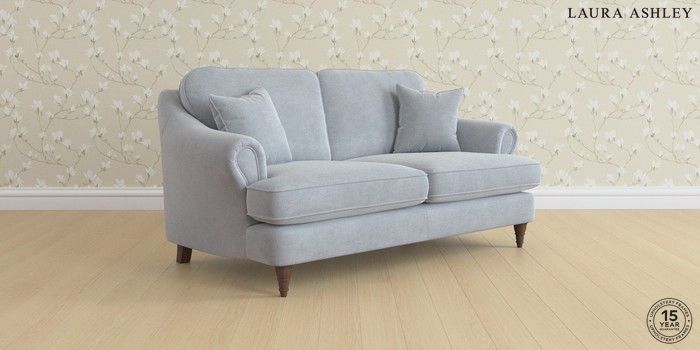 7.0.3 Buy Ambersham by Laura Ashley 3 Seater Small Sofa Peyton Powder Blue Low Turned - Chestnut from the Next UK online shop Click here to use our accessible website