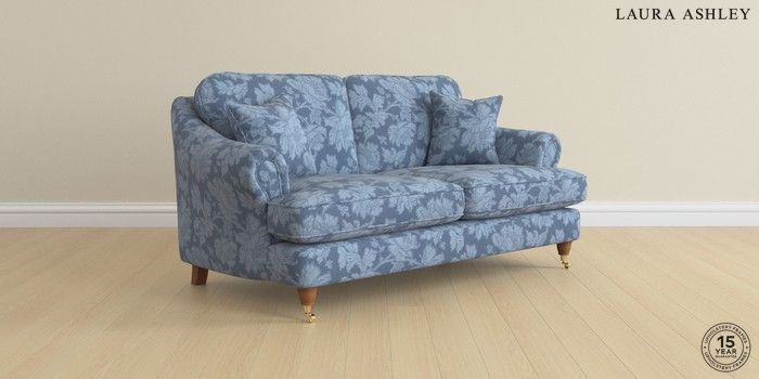 7.0.3 Buy Ambersham by Laura Ashley 3 Seater Small Sofa Tamara Dusky Seaspray Blue Low Brass Castor - Teak from the Next UK online shop Click here to use our accessible website