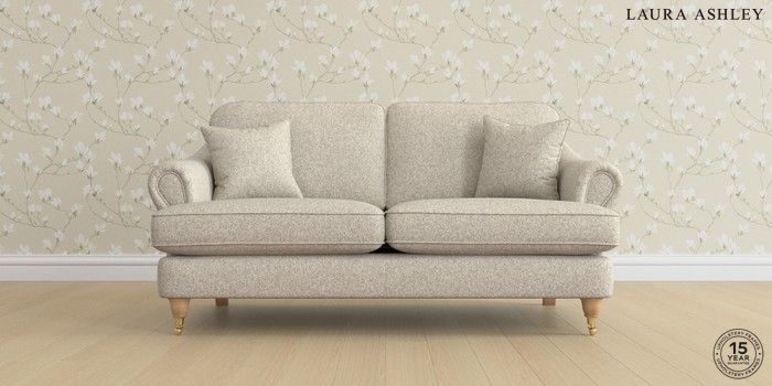 7.0.3 Buy Ambersham by Laura Ashley 3 Seater Small Sofa Tichwell Stone Natural Low Brass Castor - Light Oak from the Next UK online shop Click here to use our accessible website