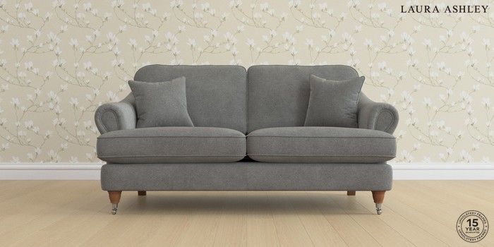 7.0.3 Buy Ambersham by Laura Ashley 3 Seater Small Sofa Wooton Dark Steel Grey Low Chrome Castor - Teak from the Next UK online shop Click here to use our accessible website