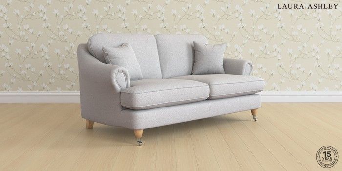 7.0.3 Buy Ambersham by Laura Ashley 3 Seater Small Sofa Wooton Pale Steel Grey Low Chrome Castor - Light Oak from the Next UK online shop Click here to use our accessible website