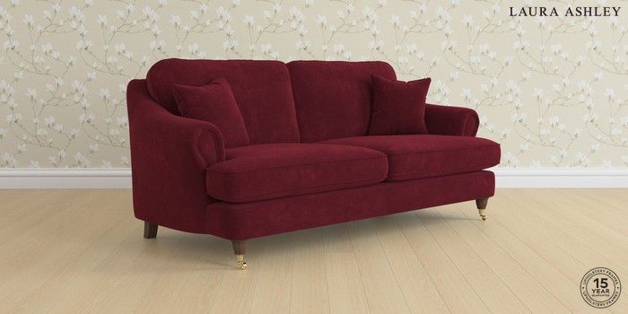 7.0.3 Buy Ambersham by Laura Ashley 3 Seater Sofa Alwyn Velvet Burgundy Red Low Brass Castor - Chestnut from the Next UK online shop Click here to use our accessible website