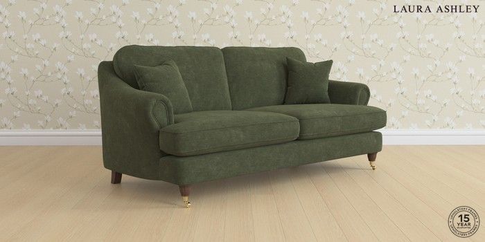 7.0.3 Buy Ambersham by Laura Ashley 3 Seater Sofa Alwyn Velvet Ivy Green Low Brass Castor - Chestnut from the Next UK online shop Click here to use our accessible website