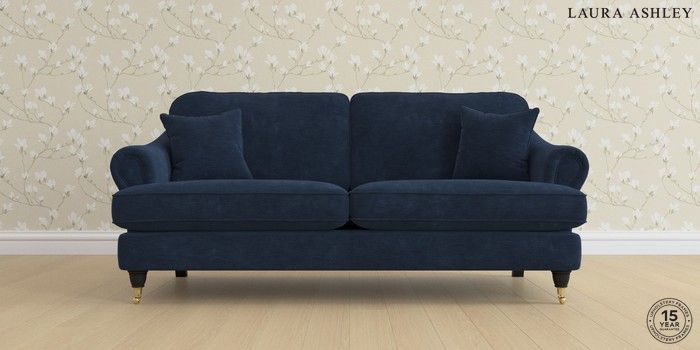 7.0.3 Buy Ambersham by Laura Ashley 3 Seater Sofa Alwyn Velvet Midnight Navy Low Brass Castor - Black from the Next UK online shop Click here to use our accessible website