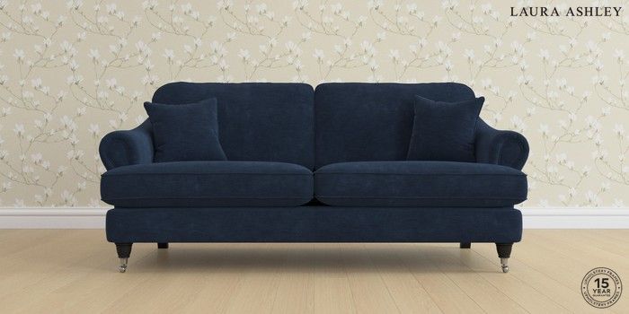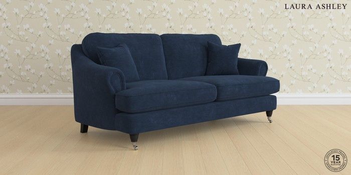 7.0.3 Buy Ambersham by Laura Ashley 3 Seater Sofa Alwyn Velvet Midnight Navy Low Chrome Castor - Black from the Next UK online shop Click here to use our accessible website