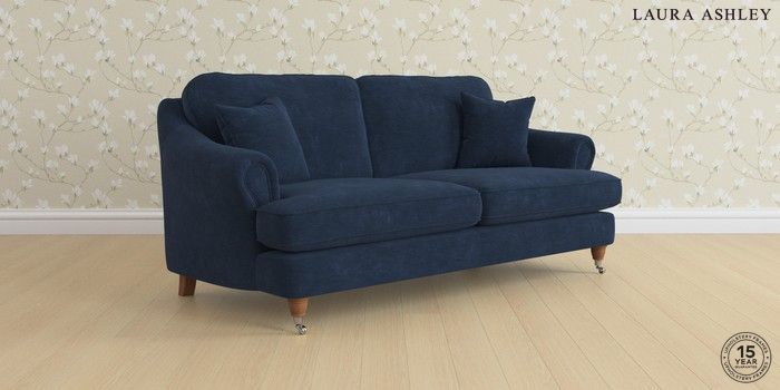7.0.3 Buy Ambersham by Laura Ashley 3 Seater Sofa Alwyn Velvet Midnight Navy Low Chrome Castor - Teak from the Next UK online shop Click here to use our accessible website