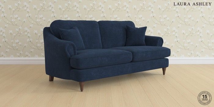 7.0.3 Buy Ambersham by Laura Ashley 3 Seater Sofa Alwyn Velvet Midnight Navy Low Turned - Chestnut from the Next UK online shop Click here to use our accessible website