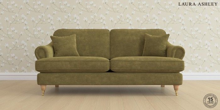 7.0.3 Buy Ambersham by Laura Ashley 3 Seater Sofa Alwyn Velvet Olive Green Low Brass Castor - Light Oak from the Next UK online shop Click here to use our accessible website