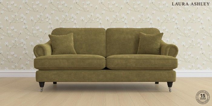 7.0.3 Buy Ambersham by Laura Ashley 3 Seater Sofa Alwyn Velvet Olive Green Low Chrome Castor - Black from the Next UK online shop Click here to use our accessible website