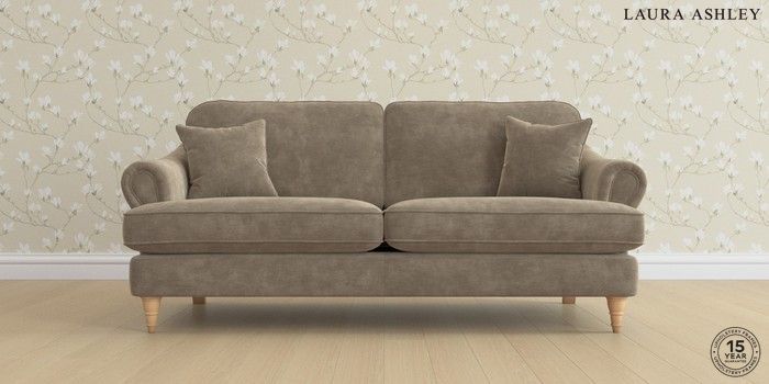 7.0.3 Buy Ambersham by Laura Ashley 3 Seater Sofa Alwyn Velvet Truffle Natural Low Turned - Light Oak from the Next UK online shop Click here to use our accessible website