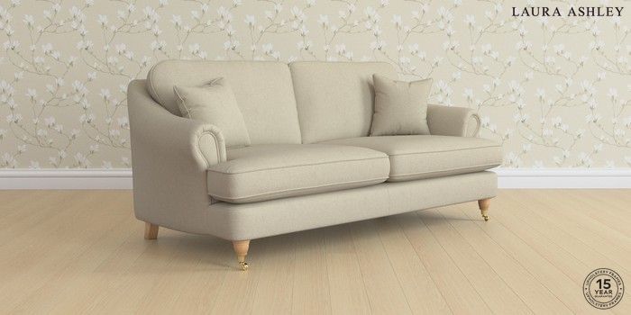7.0.3 Buy Ambersham by Laura Ashley 3 Seater Sofa Anneliese Natural Low Brass Castor - Light Oak from the Next UK online shop Click here to use our accessible website