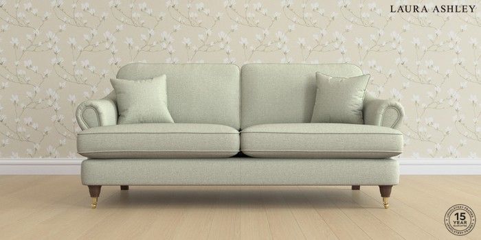 7.0.3 Buy Ambersham by Laura Ashley 3 Seater Sofa Anneliese Sage Green Low Brass Castor - Chestnut from the Next UK online shop Click here to use our accessible website
