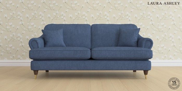 7.0.3 Buy Ambersham by Laura Ashley 3 Seater Sofa Bainton Midnight Navy Low Brass Castor - Chestnut from the Next UK online shop Click here to use our accessible website