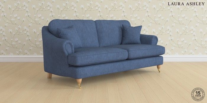 7.0.3 Buy Ambersham by Laura Ashley 3 Seater Sofa Bainton Midnight Navy Low Brass Castor - Light Oak from the Next UK online shop Click here to use our accessible website
