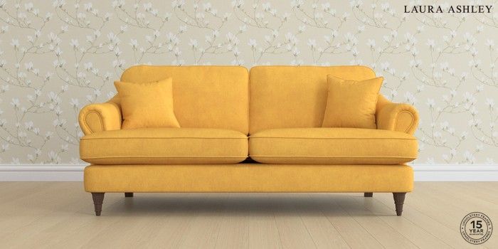 7.0.3 Buy Ambersham by Laura Ashley 3 Seater Sofa Bainton Ochre Yellow Low Turned - Chestnut from the Next UK online shop Click here to use our accessible website