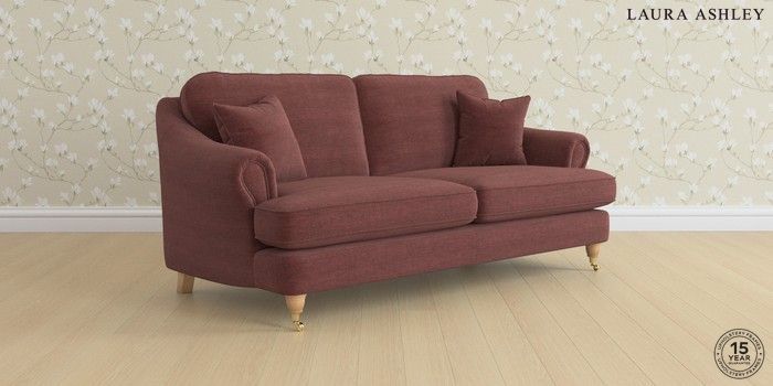 7.0.3 Buy Ambersham by Laura Ashley 3 Seater Sofa Edwin Chenille Burgundy Red Low Brass Castor - Light Oak from the Next UK online shop Click here to use our accessible website