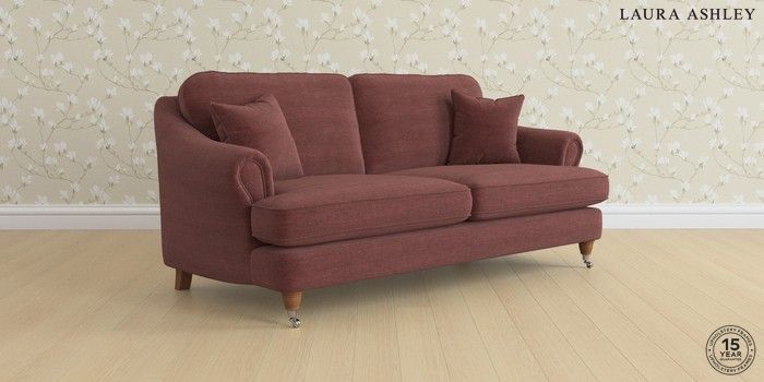 7.0.3 Buy Ambersham by Laura Ashley 3 Seater Sofa Edwin Chenille Burgundy Red Low Chrome Castor - Teak from the Next UK online shop Click here to use our accessible website