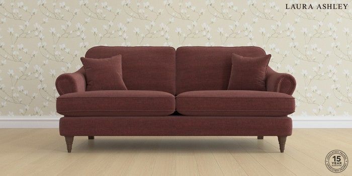 7.0.3 Buy Ambersham by Laura Ashley 3 Seater Sofa Edwin Chenille Burgundy Red Low Turned - Chestnut from the Next UK online shop Click here to use our accessible website