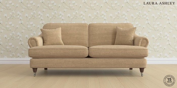7.0.3 Buy Ambersham by Laura Ashley 3 Seater Sofa Edwin Chenille Gold Natural Low Chrome Castor - Chestnut from the Next UK online shop Click here to use our accessible website