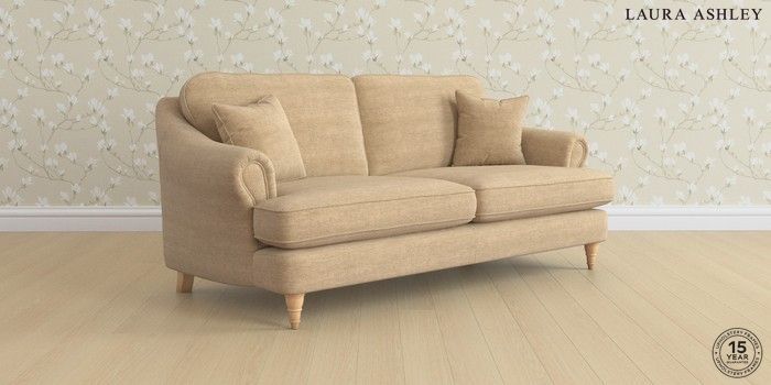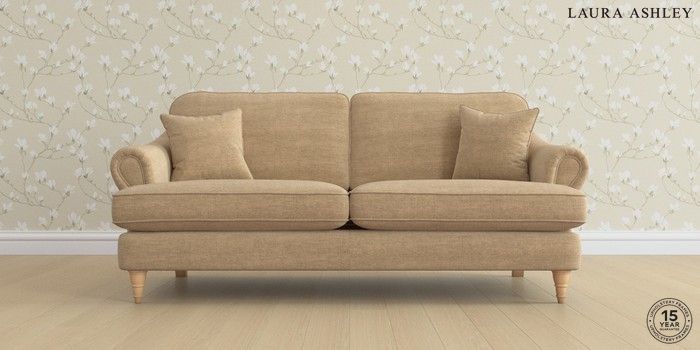 7.0.3 Buy Ambersham by Laura Ashley 3 Seater Sofa Edwin Chenille Gold Natural Low Turned - Light Oak from the Next UK online shop Click here to use our accessible website