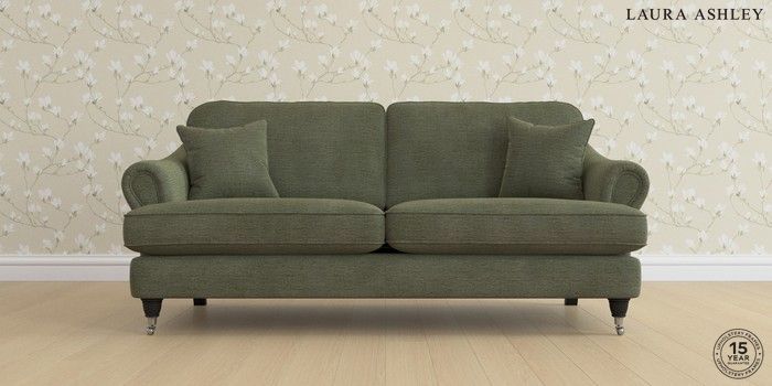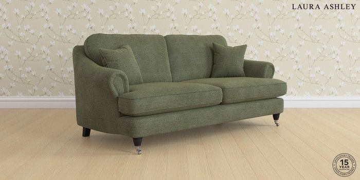 7.0.3 Buy Ambersham by Laura Ashley 3 Seater Sofa Edwin Chenille Hedgerow Green Low Chrome Castor - Black from the Next UK online shop Click here to use our accessible website