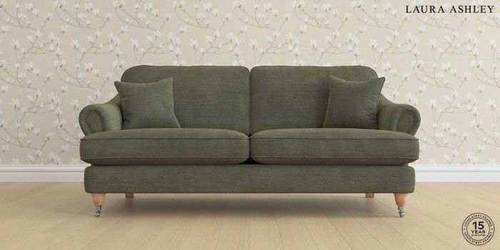 7.0.3 Buy Ambersham by Laura Ashley 3 Seater Sofa Edwin Chenille Hedgerow Green Low Chrome Castor - Light Oak from the Next UK online shop Click here to use our accessible website