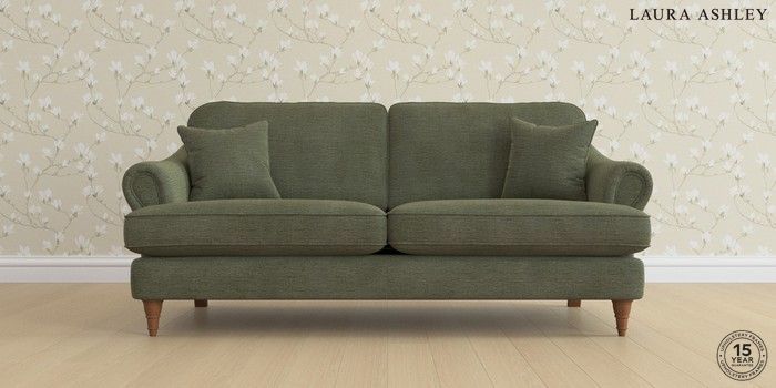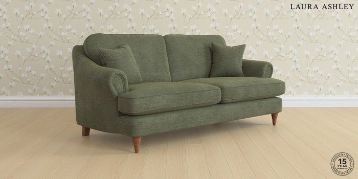 7.0.3 Buy Ambersham by Laura Ashley 3 Seater Sofa Edwin Chenille Hedgerow Green Low Turned - Teak from the Next UK online shop Click here to use our accessible website