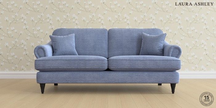 7.0.3 Buy Ambersham by Laura Ashley 3 Seater Sofa Edwin Chenille Seaspray Blue Low Turned - Black from the Next UK online shop Click here to use our accessible website