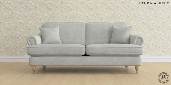 7.0.3 Buy Ambersham by Laura Ashley 3 Seater Sofa Edwin Chenille Silver Grey Low Chrome Castor - Light Oak from the Next UK online shop Click here to use our accessible website