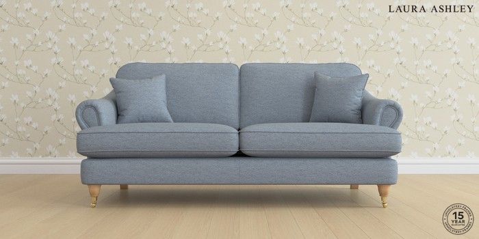7.0.3 Buy Ambersham by Laura Ashley 3 Seater Sofa Harley Seaspray Blue Low Brass Castor - Light Oak from the Next UK online shop Click here to use our accessible website