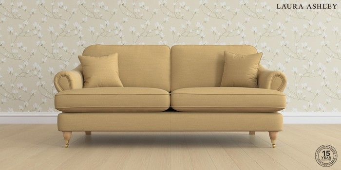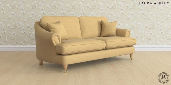 7.0.3 Buy Ambersham by Laura Ashley 3 Seater Sofa Kinsham Ochre Yellow Low Brass Castor - Light Oak from the Next UK online shop Click here to use our accessible website