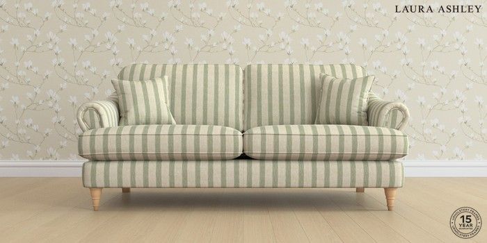 7.0.3 Buy Ambersham by Laura Ashley 3 Seater Sofa Kinsham Stripe Hedgerow Green Low Turned - Light Oak from the Next UK online shop Click here to use our accessible website