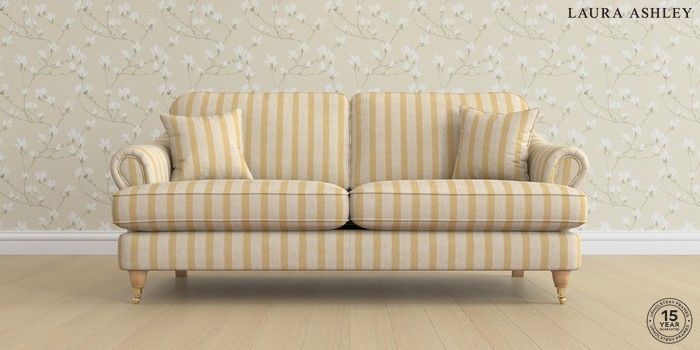 7.0.3 Buy Ambersham by Laura Ashley 3 Seater Sofa Kinsham Stripe Ochre Yellow Low Brass Castor - Light Oak from the Next UK online shop Click here to use our accessible website