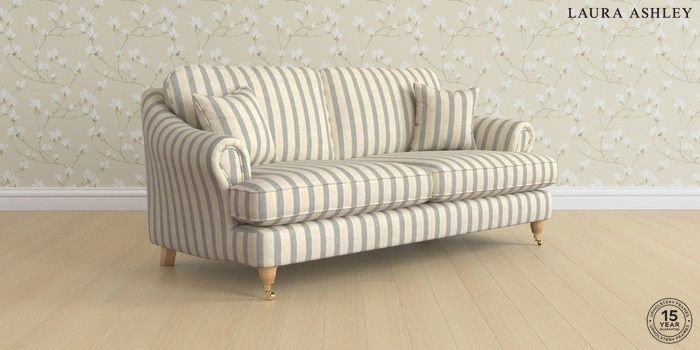 7.0.3 Buy Ambersham by Laura Ashley 3 Seater Sofa Kinsham Stripe Seaspray Blue Low Brass Castor - Light Oak from the Next UK online shop Click here to use our accessible website