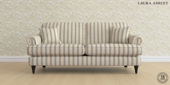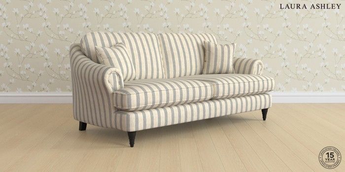 7.0.3 Buy Ambersham by Laura Ashley 3 Seater Sofa Kinsham Stripe Seaspray Blue Low Turned - Black from the Next UK online shop Click here to use our accessible website