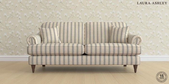 7.0.3 Buy Ambersham by Laura Ashley 3 Seater Sofa Kinsham Stripe Seaspray Blue Low Turned - Chestnut from the Next UK online shop Click here to use our accessible website