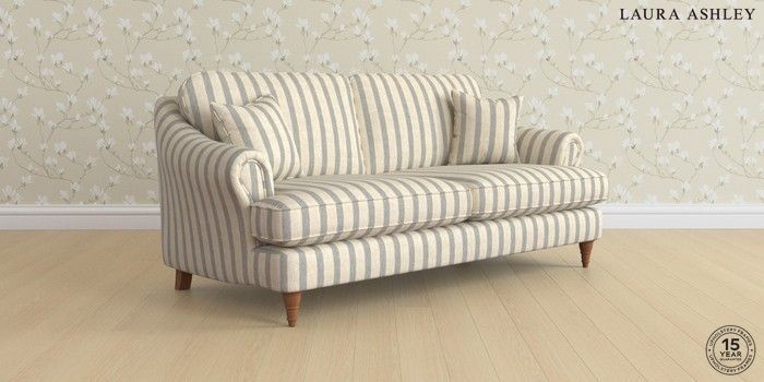 7.0.3 Buy Ambersham by Laura Ashley 3 Seater Sofa Kinsham Stripe Seaspray Blue Low Turned - Teak from the Next UK online shop Click here to use our accessible website