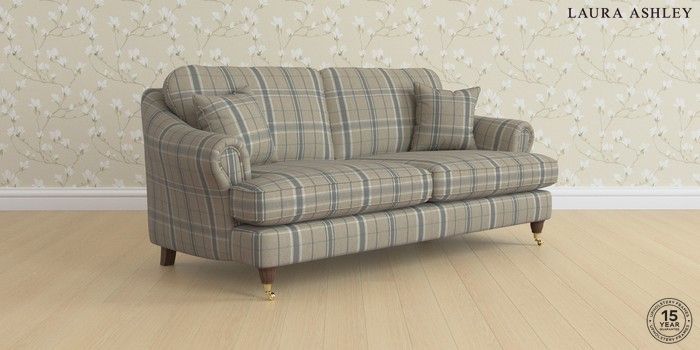7.0.3 Buy Ambersham by Laura Ashley 3 Seater Sofa Longstowe Check French Grey Low Brass Castor - Chestnut from the Next UK online shop Click here to use our accessible website