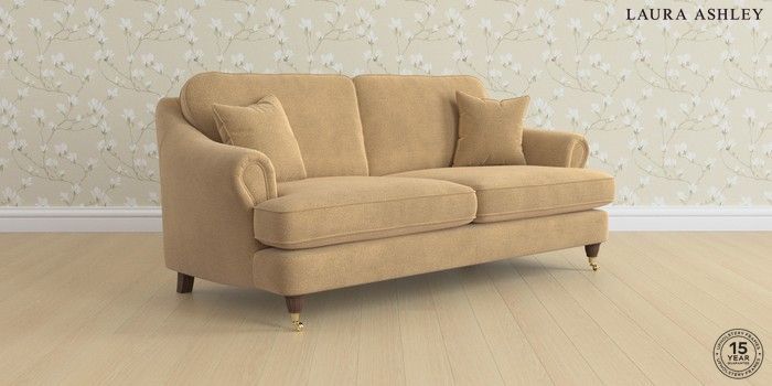 7.0.3 Buy Ambersham by Laura Ashley 3 Seater Sofa Lundar Chenille Caramel Natural Low Brass Castor - Chestnut from the Next UK online shop Click here to use our accessible website
