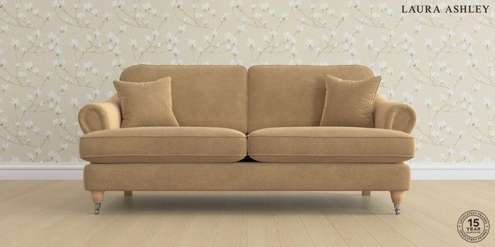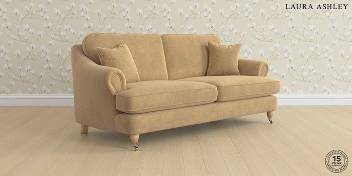 7.0.3 Buy Ambersham by Laura Ashley 3 Seater Sofa Lundar Chenille Caramel Natural Low Chrome Castor - Light Oak from the Next UK online shop Click here to use our accessible website