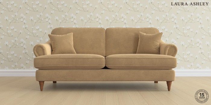 7.0.3 Buy Ambersham by Laura Ashley 3 Seater Sofa Lundar Chenille Caramel Natural Low Turned - Teak from the Next UK online shop Click here to use our accessible website