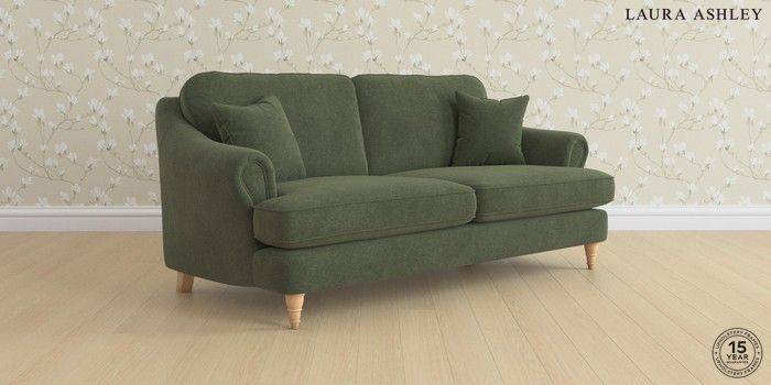 7.0.3 Buy Ambersham by Laura Ashley 3 Seater Sofa Lundar Chenille Ivy Green Low Turned - Light Oak from the Next UK online shop Click here to use our accessible website