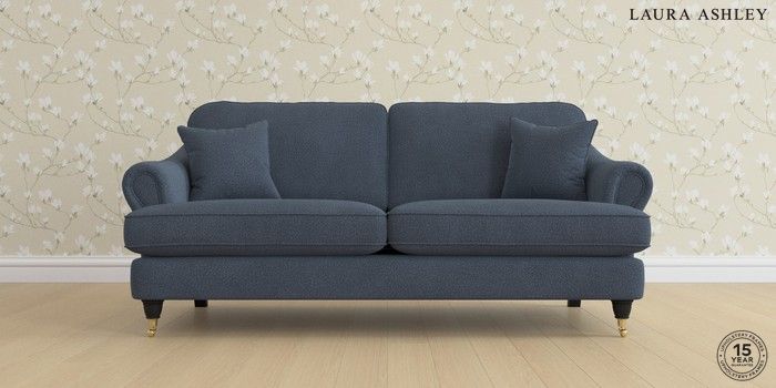 7.0.3 Buy Ambersham by Laura Ashley 3 Seater Sofa Lundar Chenille Navy Blue Low Brass Castor - Black from the Next UK online shop Click here to use our accessible website