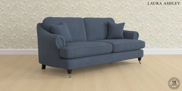 7.0.3 Buy Ambersham by Laura Ashley 3 Seater Sofa Lundar Chenille Navy Blue Low Chrome Castor - Black from the Next UK online shop Click here to use our accessible website