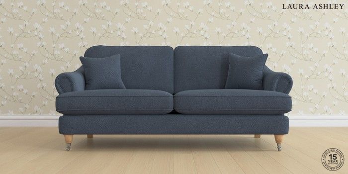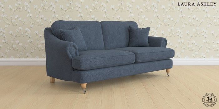 7.0.3 Buy Ambersham by Laura Ashley 3 Seater Sofa Lundar Chenille Navy Blue Low Chrome Castor - Light Oak from the Next UK online shop Click here to use our accessible website