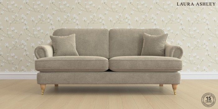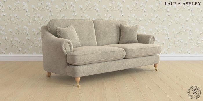 7.0.3 Buy Ambersham by Laura Ashley 3 Seater Sofa Lundar Chenille Truffle Natural Low Brass Castor - Light Oak from the Next UK online shop Click here to use our accessible website