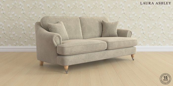 7.0.3 Buy Ambersham by Laura Ashley 3 Seater Sofa Lundar Chenille Truffle Natural Low Chrome Castor - Light Oak from the Next UK online shop Click here to use our accessible website